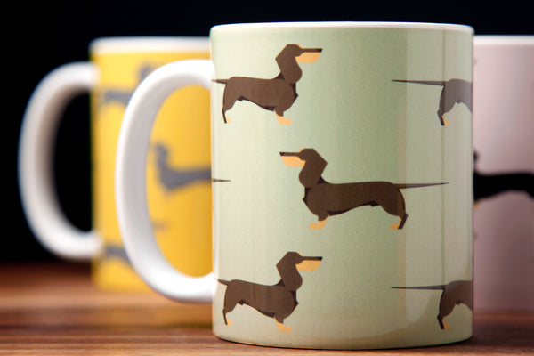 Delve into our sexy Designer Collection for the original illustrated Doxie and Frenchie prints, available on mugs. These crisp designs are for the restrained and distinguished.